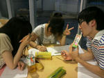 こんにちは! こんばんは! 舞美の嶋村です! 仕込み(劇場入り)まで1週間を切りました! 他セクション同様、舞台美術班も仕込みに万全の状態で臨むべく連日連夜日進月歩、 トンテン! カンテン! ギコギコ! ウィーン! ズガガガ! ガハハハ! 猛烈な轟音の中、見る見る形を成していく大道具にスペースを蝕まれつつ、今回の舞台空間の胎動を確かに感じ、作業しています! 「ぐは!釘で木材がわれちまった!」 「何?何センチだ!?」 「9センチっす!」 「任せな!」 スー!ピタッ!シュッ!シュッ!ギコギコ! 「ほらよ!頑張んな!」 「うっす!うォォォォォ!!!!」 公演成功に向け、舞美員の戦いはつづく! to be continued… 一年の塩崎です。タカラヅカが大好きで生きがいになりつつあります(・∀・) わたし、人より格段にテンションが低いので、以下の文章は文末に!!とか♪を付ける勢いで読んでくださいっ 昨日は校外情宣に行ってきましたwith素敵な先輩×2。 色んな劇場さんにチラシを置かせてもらいに行きました。 公演中の劇場さんもあって、なかなか楽しかったですよ~ その時食べたラーメンのクーポンがあるので先着一名様に差し上げます^^ そして今日は音響会議でしたー みんな真剣そのものですね 何もなかったところからどんどん進んで、みんなの想いが一つの公演になるのってすごいなー。と思いまして。 演劇とか観たことない!って人も、ぜひ気軽に観にいらしてください! 一劇一心! 言ってみたかった(´ω`) |